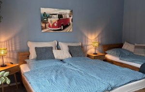 Hier ist eine Wohlfühloase entstanden, in der bis zu 5 Personen den Alltag hinter sich lassen können. Sie finden hier eine Wohnung vor, welche aktuellen Standards sicherlich entspricht. Nach einem langen Tag mit unzähligen Impressionen des Ostseelandes können Sie im großen Wohnzimmer auf unserer Sitzgruppe bei einem Roman oder einem guten Film entspannen (40“LED-Sat-TV vorhanden) oder nutzen Sie unseren kostenfreien WLAN-Anschluss um Ihre Erlebnisse mit den daheimgebliebenen Freunden zu teilen.